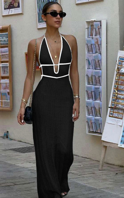 LaceFlick – Robe Maxi Colorblock à Lacets Halter | Audacieuse, Élégante, Esprit Nocturne