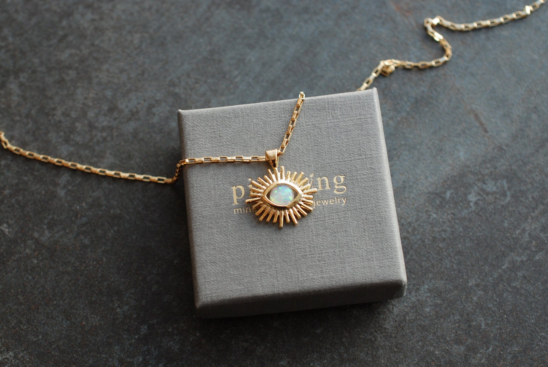 Collier HELIOS Porte-Bonheur Œil Protecteur – Pendentif en Verre Imitation Opale
