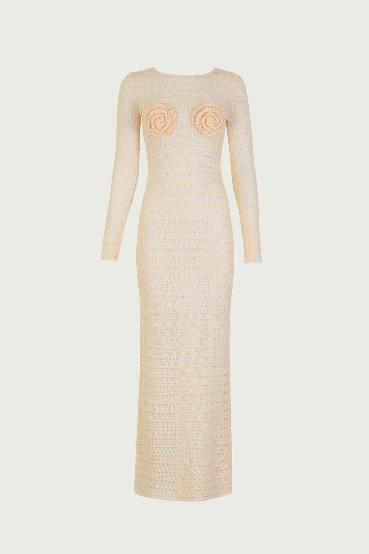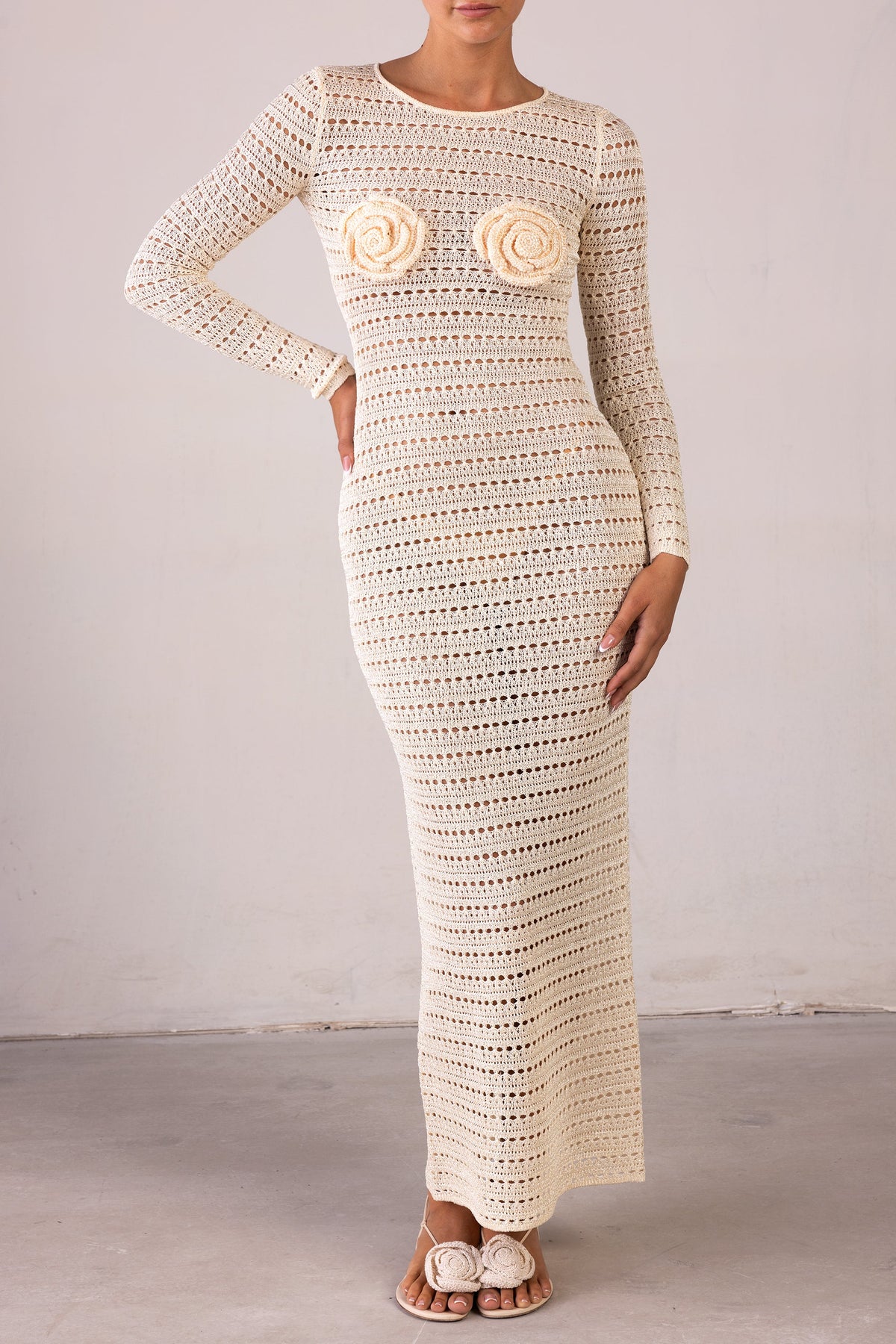 Robe Rosette en Crochet – Crème, Élégance Bohème & Détails Floraux Raffinés